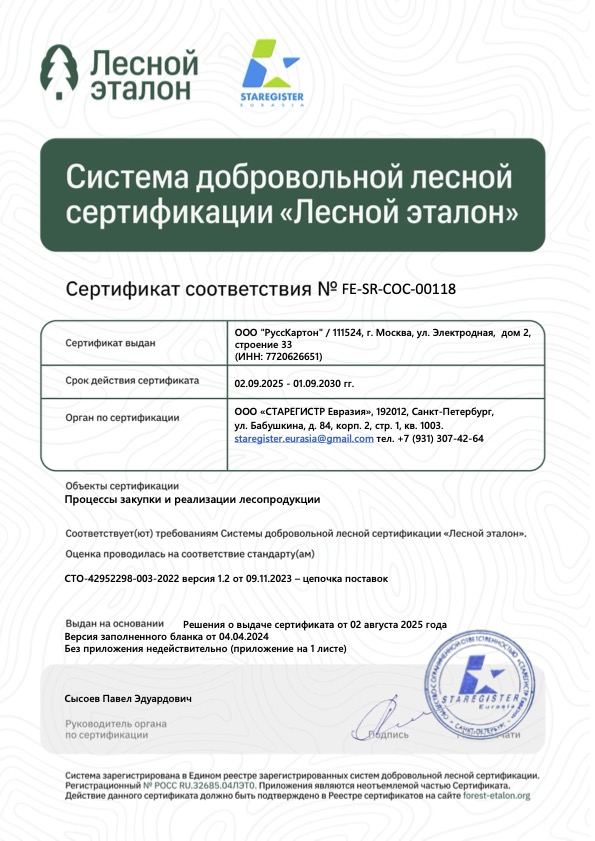 | НАИМЕНОВАНИЕ | ООО «РуссКартон» |