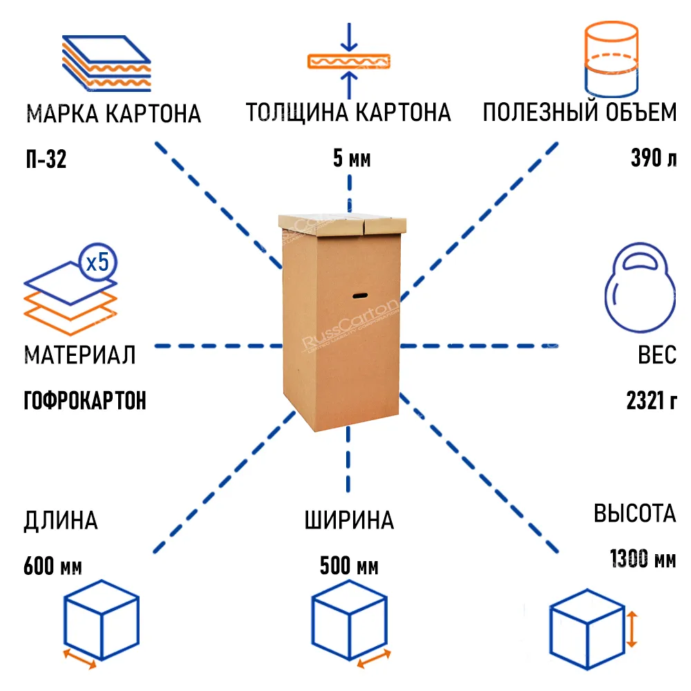 Часто при переезде встает вопрос - как перевезти одежду чтобы она не помялась и не потеряла свой внешний вид. Есть простое и доступное решение - гардеробная коробка-шкаф. Гардеробная коробка изготовлена из пятислойного гофрокартона, имеет большой запас прочности, предусмотрены ручки.