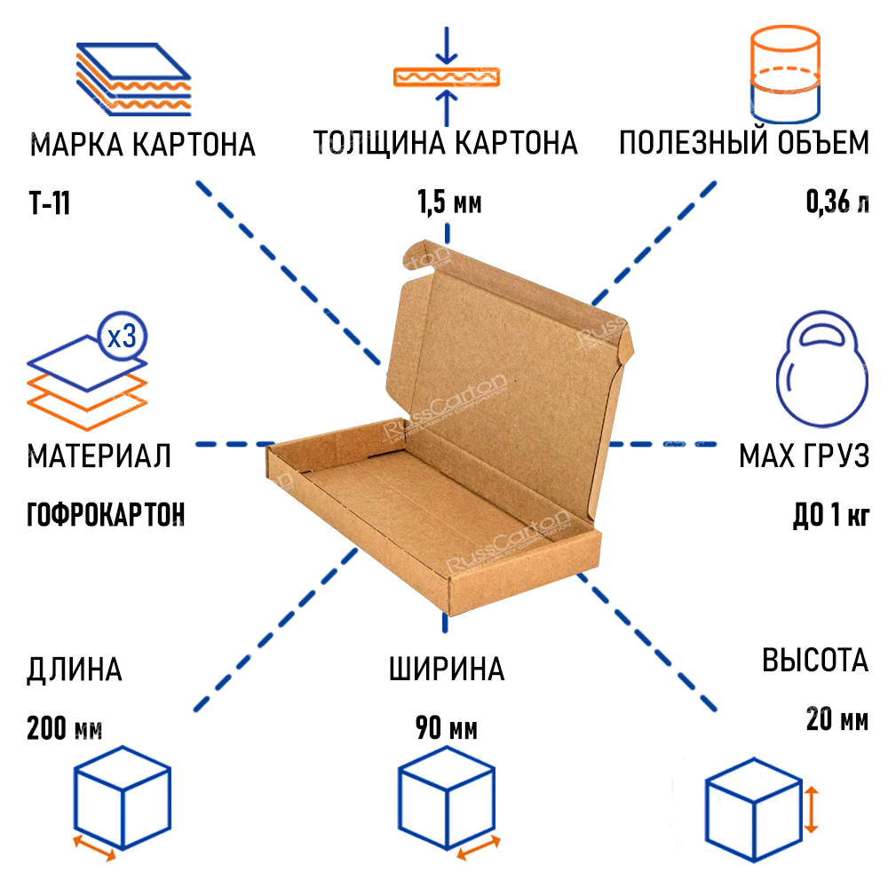 Картонный короб КС, 200х90х20 мм, Т-11 бурый