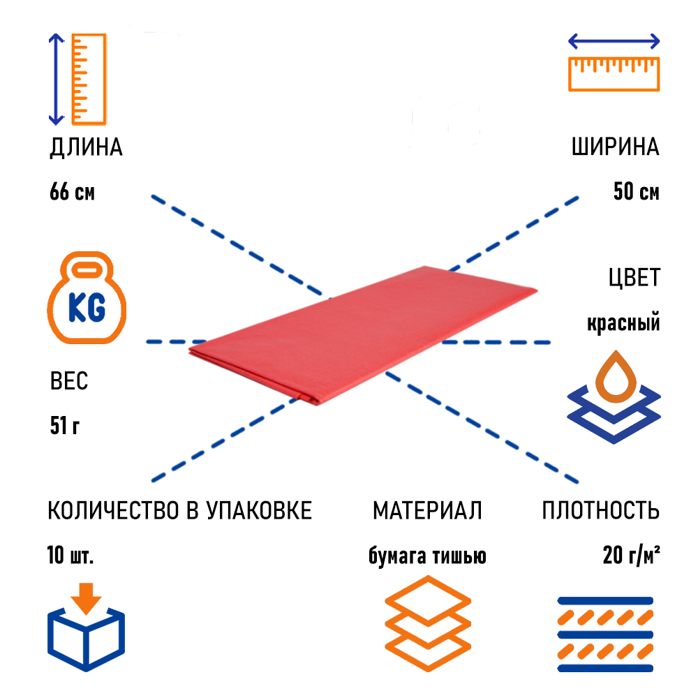 Бумага тишью красная, 50х66 см, 10 листов