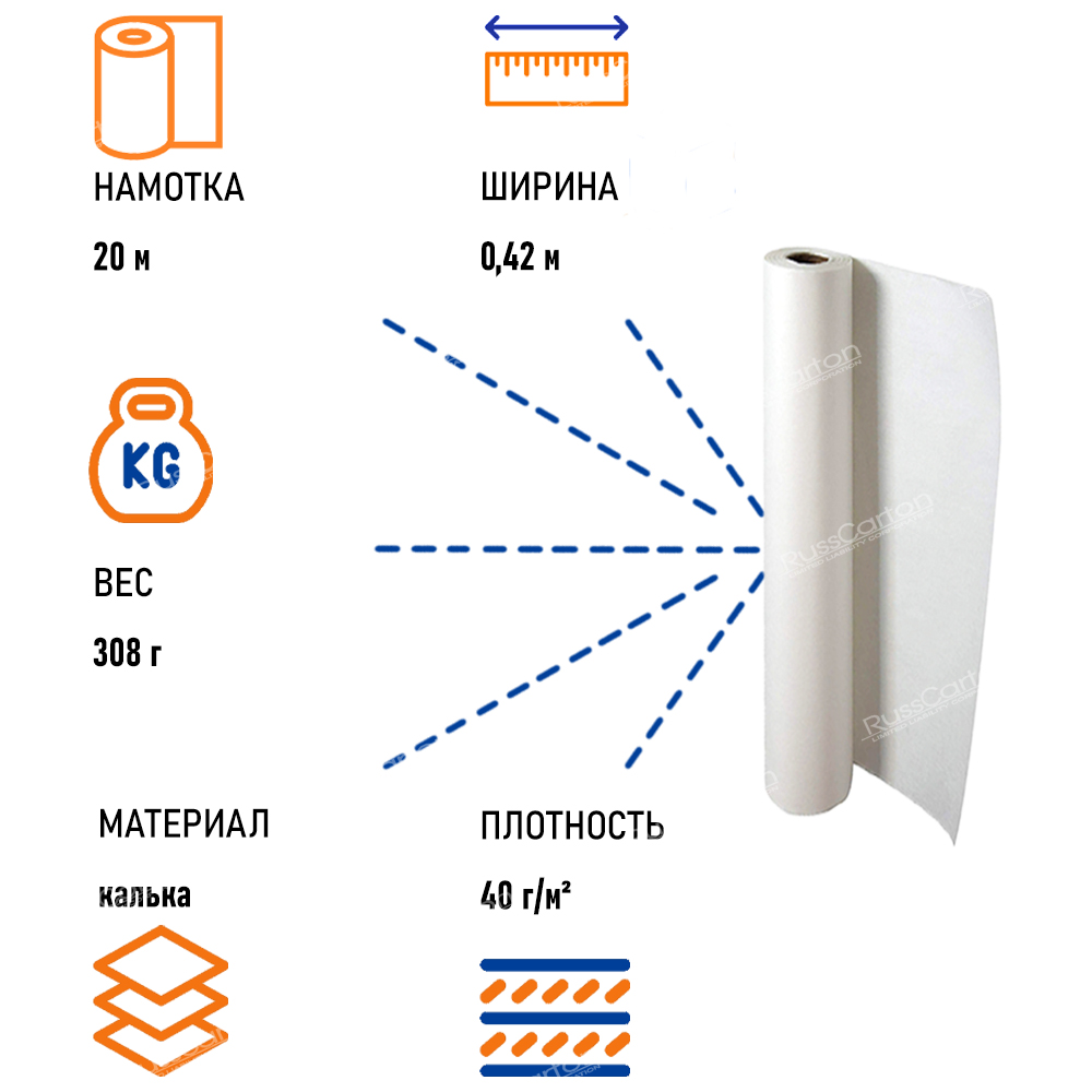 Калька бумажная в рулонах - тонкая прозрачная бумага, изготовлена из экологически безопасной беленой целлюлозы, имеет полупрозрачную структуру. Применяется при черчении, свето- и ручном копировании, используется для создания выкроек, переноса рисунков и чертежей. Также бумажная калька применяется для упаковки товаров и обертки различных предметов при их хранении, транспортировке или при переезде.