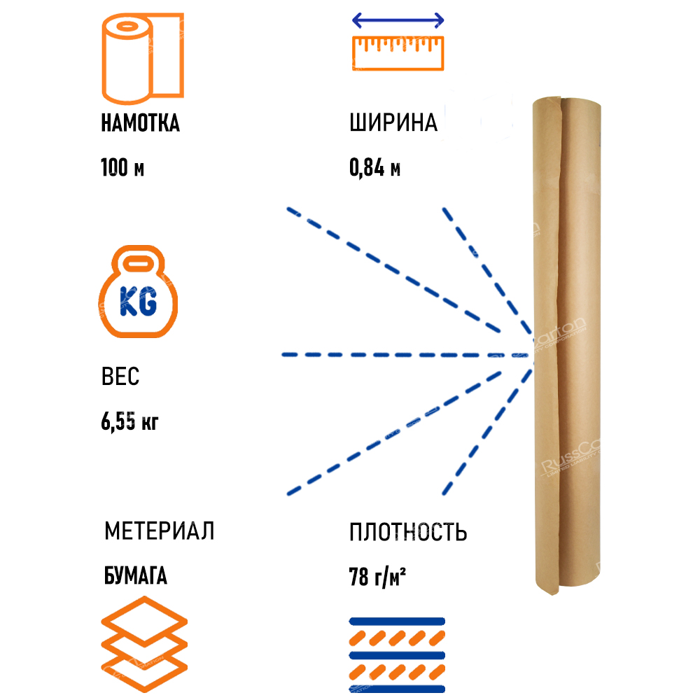 Бумага крафт мешочная, рулон 0.84 х 100 м