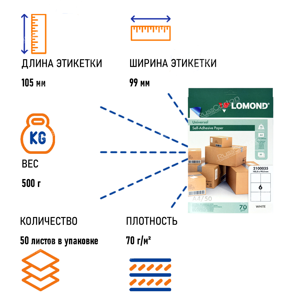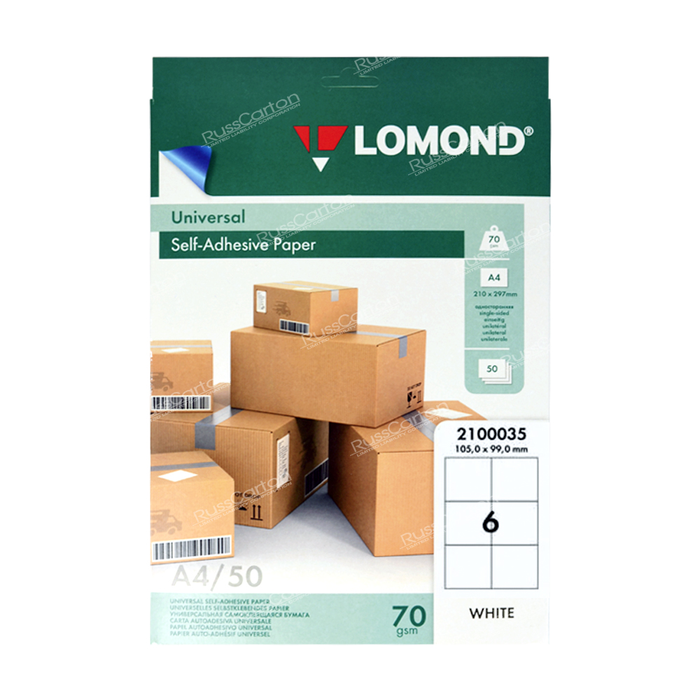Самоклеящаяся бумага LOMOND белая, А4, 50 л, 6 этикеток, 105х99 мм
