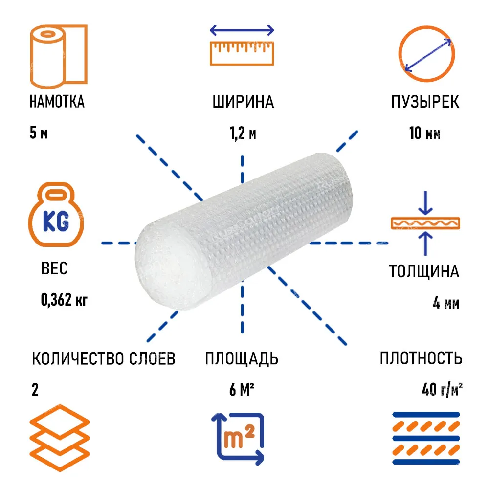 Пленка воздушно пузырчатая "Мини" двухслойная, 1.2 х 5 м